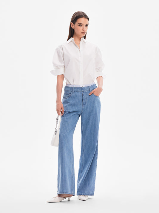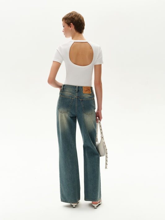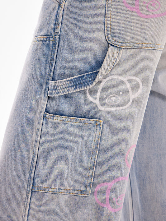 Onigiri Bear High-Waisted Straight-Leg Denim Pants
