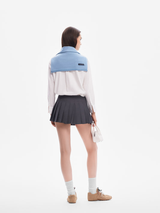 Denim A-Line High-Waisted Pleated Mini Skirt
