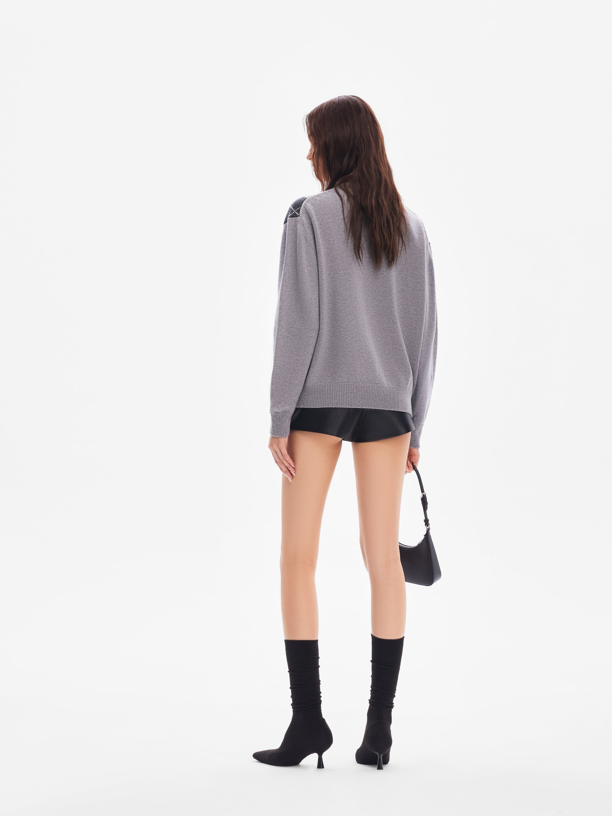 Color-block embroidered V-neck long-sleeve argyle sweater