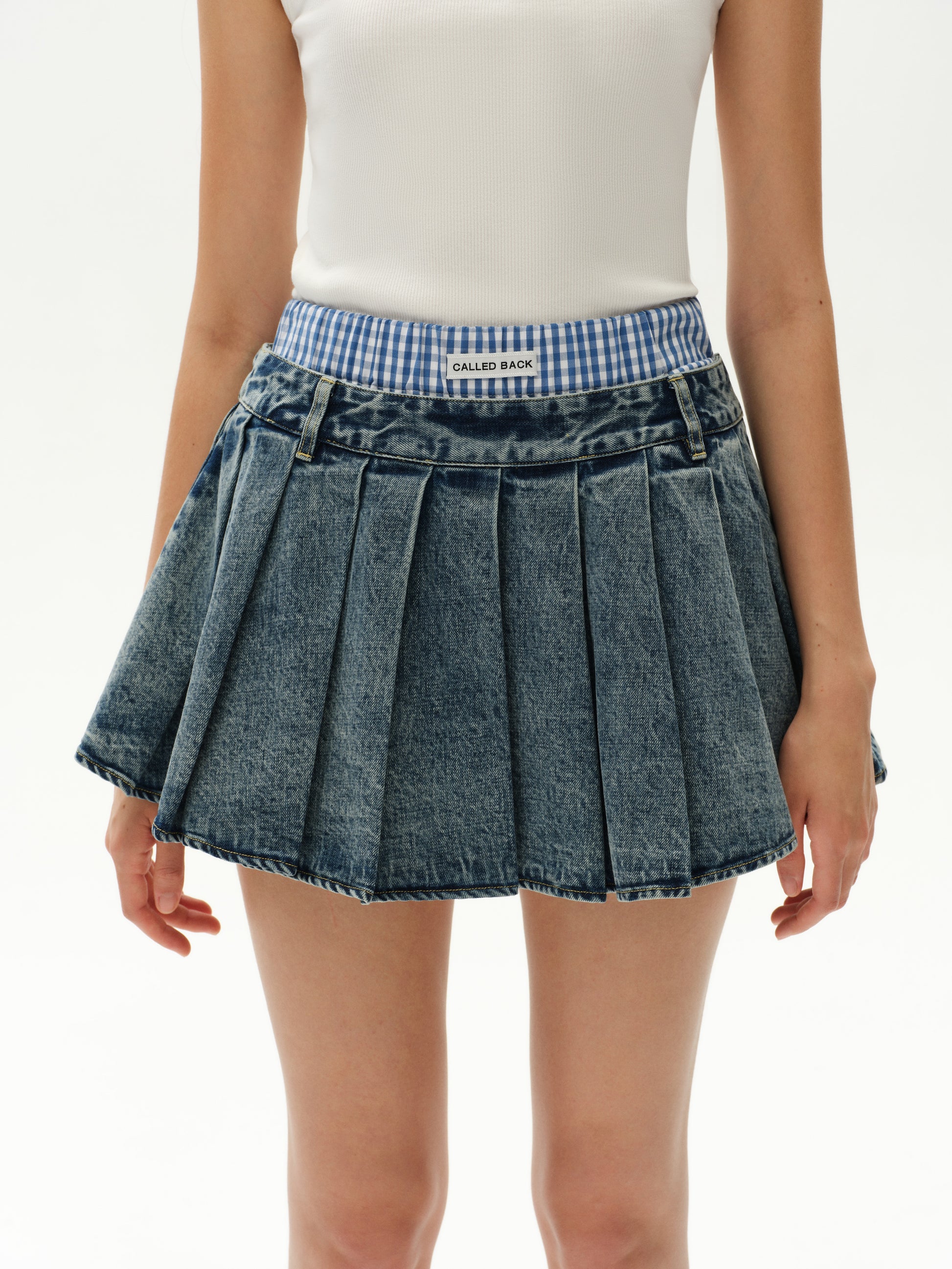 Denim A-Line High-Waisted Pleated Mini Skirt
