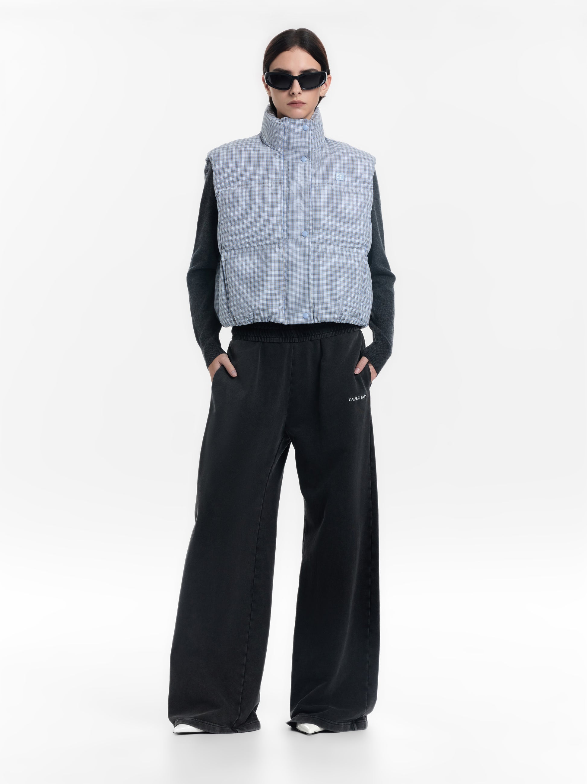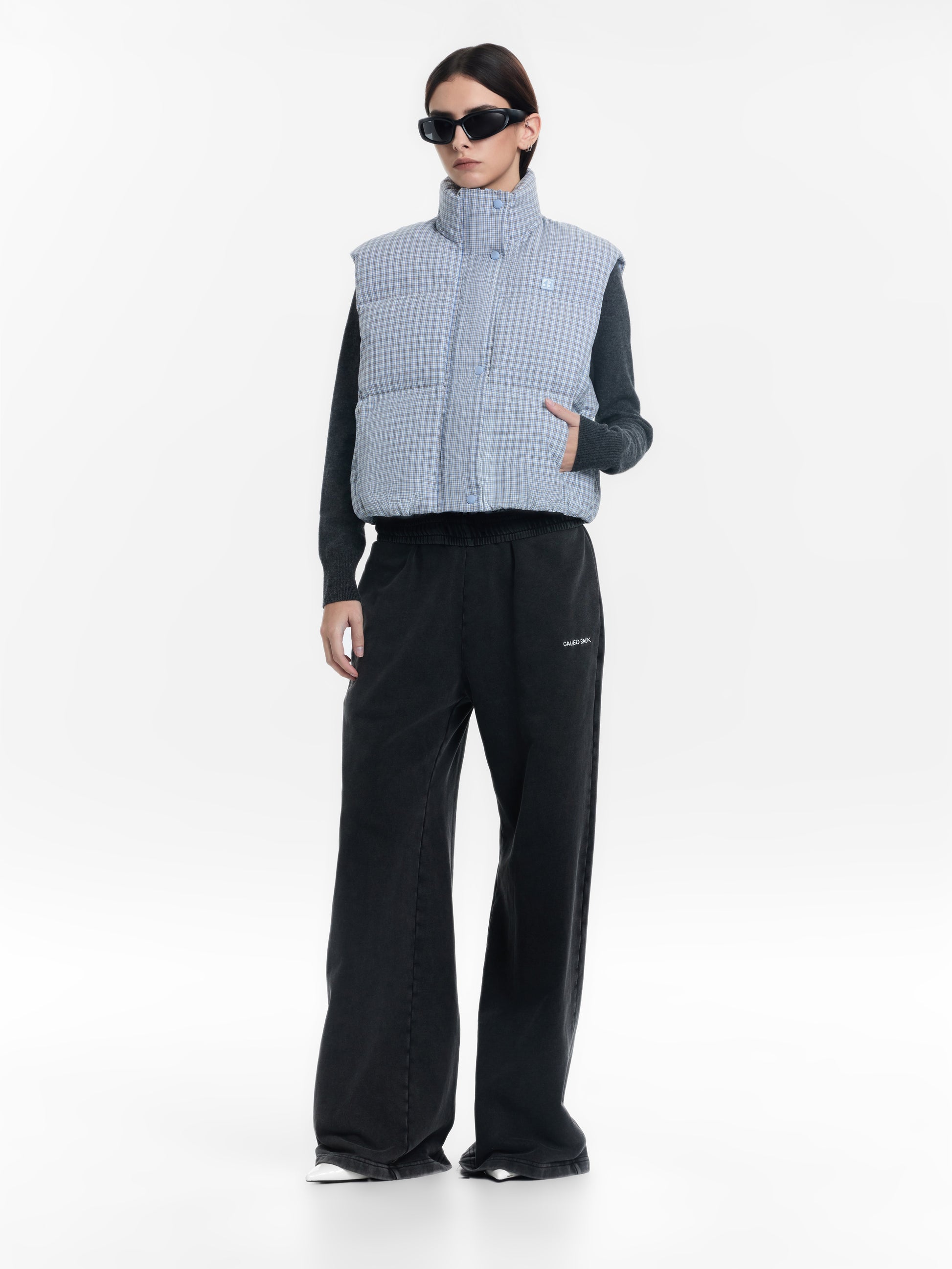 Plaid White Goose Down Vest