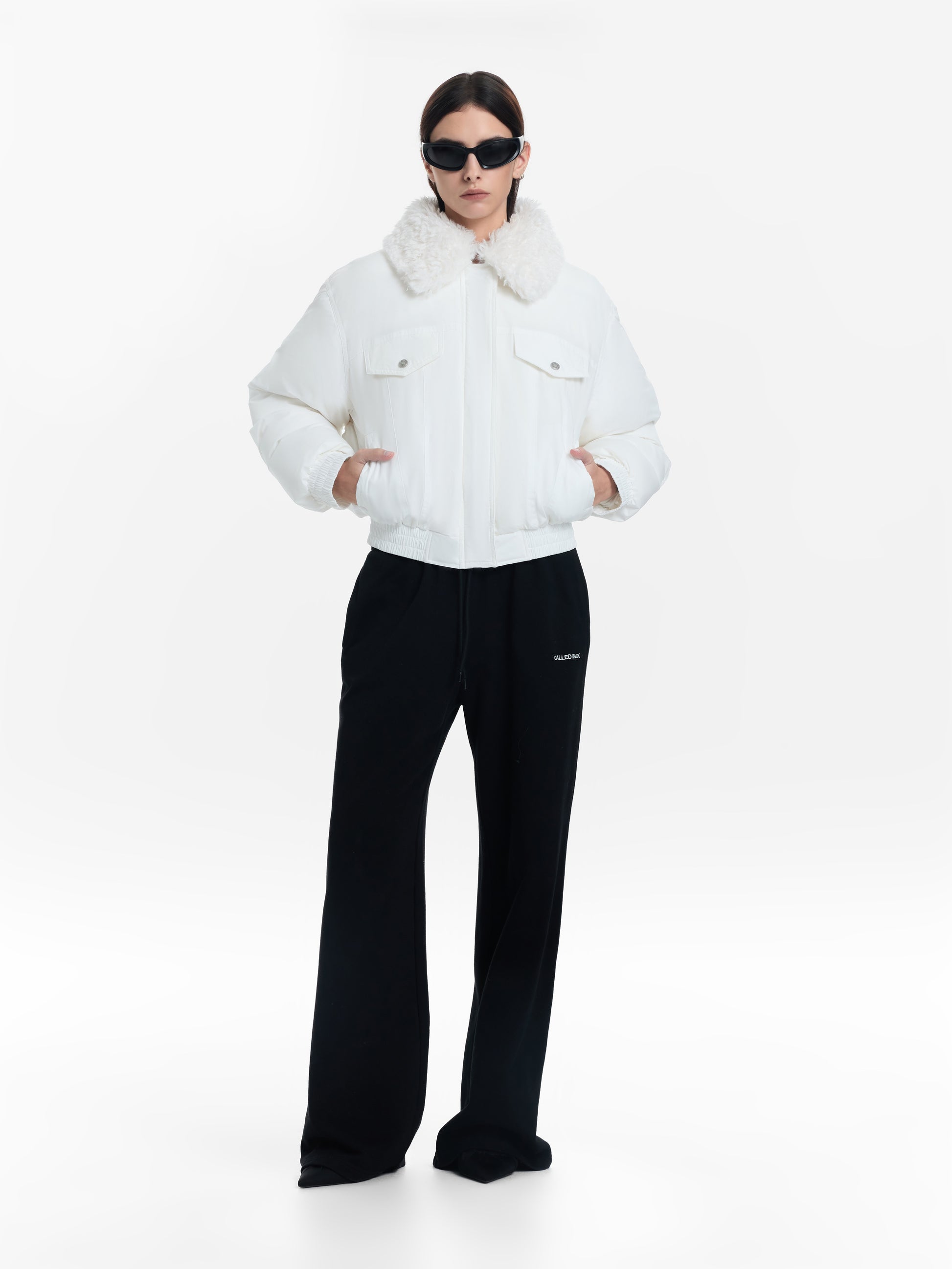 White goose down jacket with fur collar